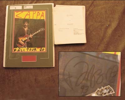 Here we offer a matted signed concert program together with the original script for an unmade film. "Besides work-ing on the hideous little rock opera I Was A Teen-age Malt Shop, I was trying to raise money for a micro-budget sci-fi film called "CAPTAIN BEEF-HEART vs. THE GRUNT PEOPLE." Captain Beefheart was a character I invented for the film. His name derives from one of Don Vliet's relatives who looked like Harry Truman. He used to piss with the door open when Don's girlfriend walked by and make comments about how his whizzer looked just like a beef heart." Both EX.