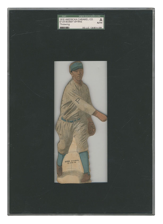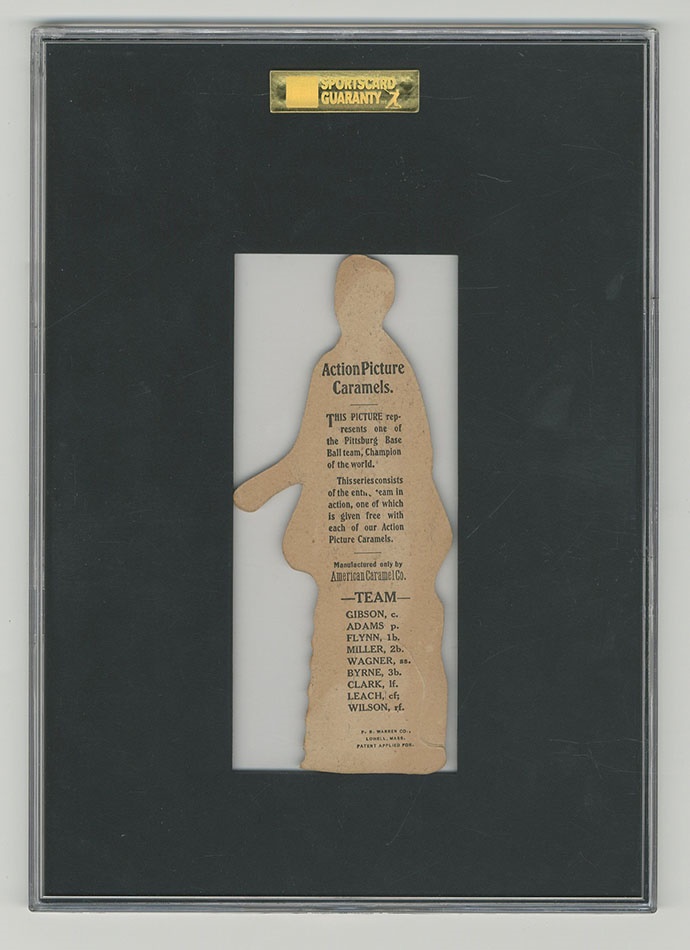 Graded "Authentic" only because the bottom flap is missing. This card is fragile due to its die-cut nature, hence most were sadly lost. Yes, American Caramels are quite rare.
