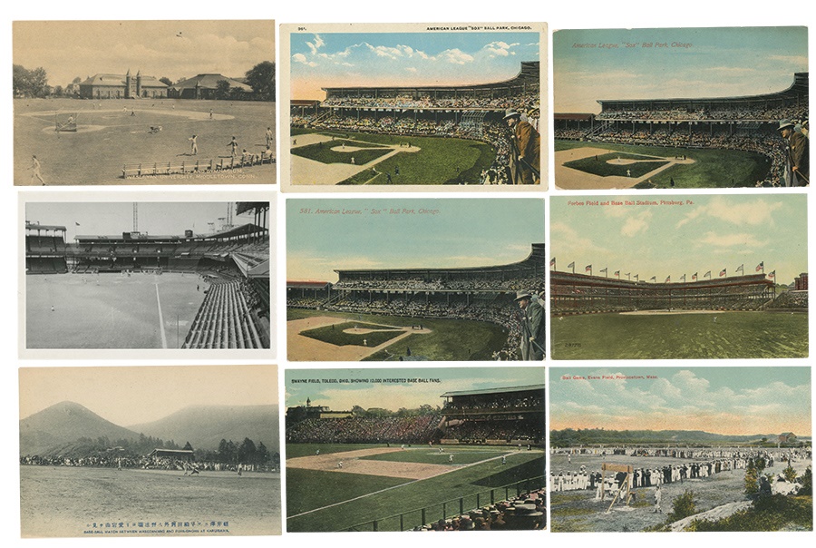 Beautiful collection of stadium postcards date from the early 1900s to the 1960s. Majority are from the 1920s-40s with many great pieces including rarities, linens, and more. Most are major league but there are some rare minor league, unusual locals, and early Japan Tour of "Base-Ball Match Between Wasedanians (University) And Foreignors at Karuisawa" we have never seen (NM unposted). Some posted, EX+ overall. One man's 50-year collection. 337 pieces.