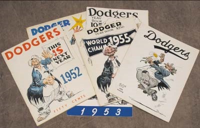 One of the nicest grade Dodger yearbook collections we have ever seen. Includes the Brooklyn Dodgers 1951 NRMT, 1952 EX+, 1953 NRMT, 1954 NRMT, 1955 EX+, 1956 NRMT, and 1957 NRMT. For the Los Angeles Dodgers, they are all here: 1958-2000. They are all Mint except for 1965, which is EX-MT.