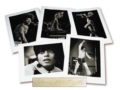 16"x20" there are 59 pieces in all. Barrie Wernstzell was the cheif photographer for Melody Maker Magazine from 1965-1975. These photographs from the photographer are all hand signed by him along with his artist's seal. They are each num-bered #2 of only an extremely rare edition of fifty each. These photographs retail for upwards of $1500 Canadian each, making this is a terrific investment opportunity. All are NRMT. The fifty-five include Cat Stevens, Aretha Franklin, Roger Waters, Robert Plant (2), Roger Daltrey (2), Joan Baez, Genesis, David Gilmore, Tiny Tim, Reverend Gary Davis, Alice Cooper, Ravi Shankar, Jimmy Page, Faces, Ramblin' Jack Elloit, Ritchie Blackmore, Gary Brooken, Ayers/ Nico/ Cale/ Eno, Leonard Cohen, Johnny Winter, Joni Mitchell, Grace Slick, Melanie, Rod Stewart, Ray Davies, Paul Simon, Jon Anderson, Taj Mahal, Moody Blues, John Mayall, Diana Ross, Steve Marriott, Little Richard, Ritchie Havens, Three Tons Of Joy, Troggs, Freddy King, Count Basie, Dr.John, Jack Bruce, Jerry Lee Lewis, Bob Fripp, Ginger Baker, Bryan Ferry, Ian Anderson, Kim Fowley, Eric Burden, Pete Townshend, Marc Bolan, Tom Paxton, Donovan, Dave Mason, Leon Russell, Keith Emerson, and Albert King.