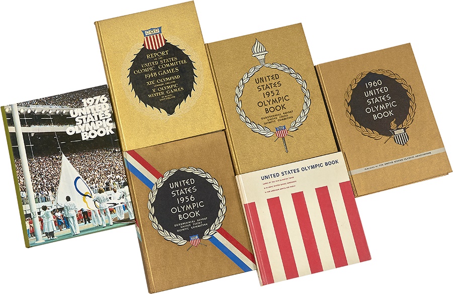 These impressive hardcovers are the Official U.S. Olympic Committee Reports. Have gotten tougher to find as time goes on: 1948, 1952, 1956, 1960, 1964 and 1976. Overall NM.