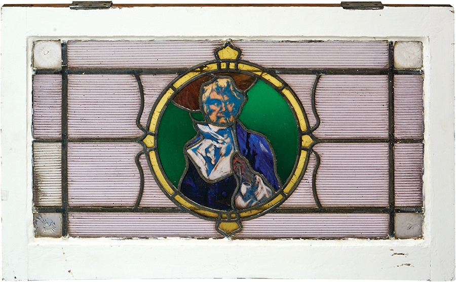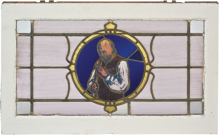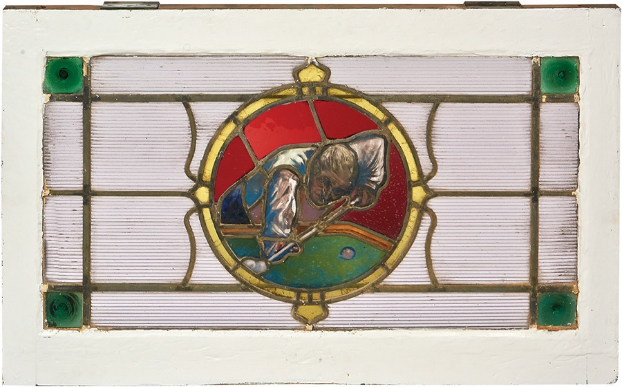 Lot # 427: 1902 Billiards Stained Glass Windows Set of Three