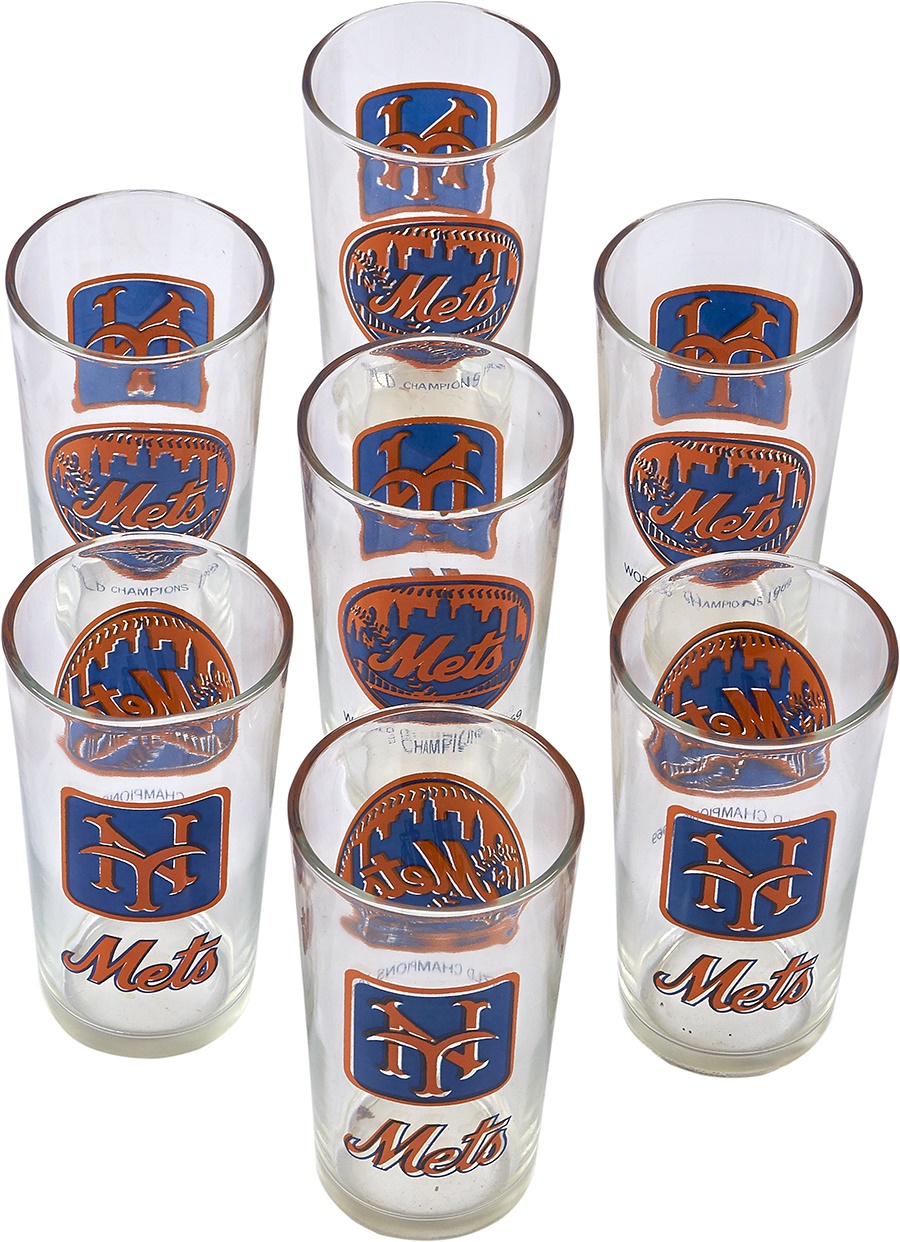 One short from a complete set of 8. Original box is battered, but there. Glasses are 5" tall.