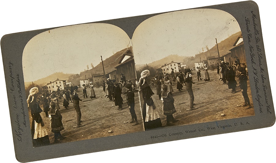 Now this is one we have not noticed before. Displays a Keystone view of "Oil Country" in West Virginia and shows a countrified baseball game in progress. Conservatively rates in EX condition.