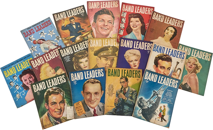 Great covers include Frank Sinatra, Benny Goodman, Tommy Dorsey, Woody Herman, Gene Krupa, Harry James, Grable/James, Glenn Miller, Dinah Shore & All-American Band Leaders #1. 1945-46, EX overall.
