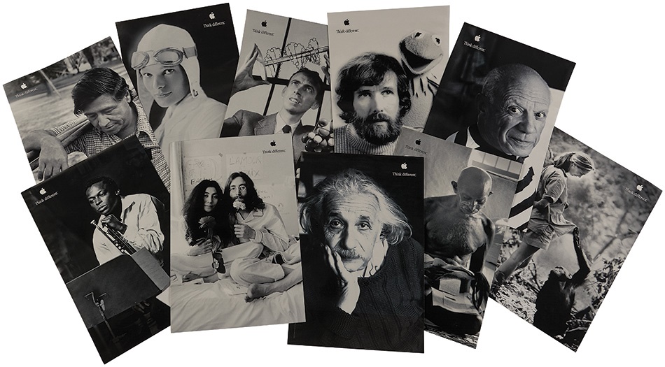 Enormously successful campaign features some of the great humans of our time: Lennon & Ono, Miles Davis, Einstein, Richard Feynman, Gandhi, Cesar Chavez, Picasso, Kermit the Frog & Jim Henson, Jane Goodall & the Peeping Tom Chimp, and Amelia Earhart. Each are 11" x 17" with piece of tape on backs, but otherwise EX-MT.