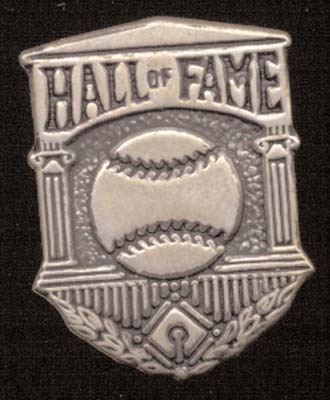 The actual pin presented to and worn by Jackie on the day of his induction into the National Baseball Hall of Fame in Cooperstown, New York. 1" pin is sterling silver and is marked as such on the verso. It is in its original box, which is very much of the period. Box is 2x1.5". Pin is Mint; box is EX+.