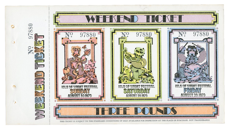 Complete weekend sheet is a beautiful slice of psychedelic art 8 3/4" x 4 3/4". Lineup included Jimi Hendrix, The Who and The Doors.