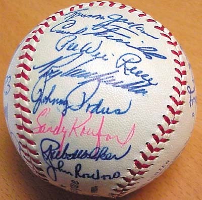Ebbets Field's last stand. Twenty-six signatures from the final Brooklyn squad are all stunning 10/10's. And no short-age of stars: Koufax, Reese, Campy, Snider, Drysdale, Hodges and Furillo. ONL (Giles) ball is equally spectacular.