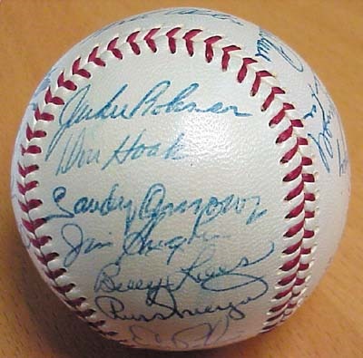 You think you've seen one nicer than this? Well, you're wrong. That's all there is to it. Super-white ONL (Giles) ball is 100% Mint, and we almost never make that claim. Twenty-four 10/10 blue ink signatures include all your favorites: Robinson, Campy, Reese, Snider, Hodges, Erskine, Furillo and Alston. Just flawless.
