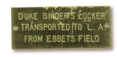 A piece of history, or at least a piece once attached to a piece of history. 2.5x1" metal tag is engraved "Duke Snider's Locker Transported to L.A. from Ebbets Field." A neat collectible for you Bums.