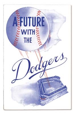 Thirty-two-page pamphlet pushes young ballplayers to go with the Brooklyn Dodgers. Wonderful cornu-copia of information on the club is lavishly illustrated. 9x6", small piece of tape on spine o/w NRMT.