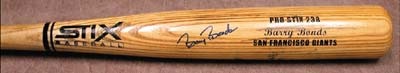 This Giant will go down in history as one of the greatest long ball threats of all time. "Pro Stix 238" hardwood speaks of the slugger's power in the form of deadly ball marks on the barrel's sweet spot. Number "25" in marker on knob. Blue sharpie signature on barrel is perfect.