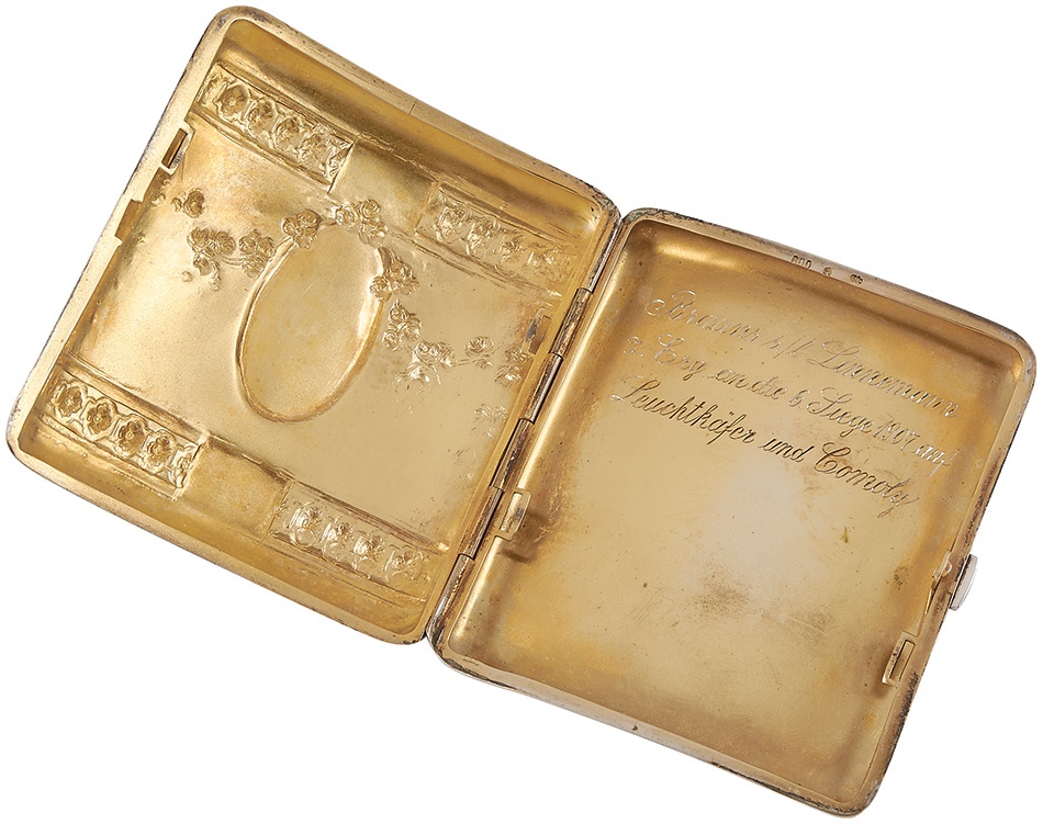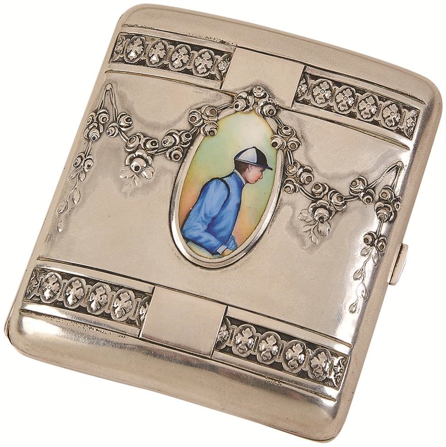 Lot # 71: 1907 Engraved Silver Cigarette Case Presented to Jockey