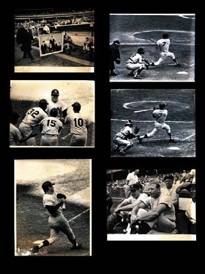 You know these are some great shots if Mantle him-self hung onto them. Half-dozen black and white 8x10" photos are equally divided between action shots (great swings from both sides of plate) and candid shots (all in uniform). EX-MT overall. Acquired directly from Mantle estate.