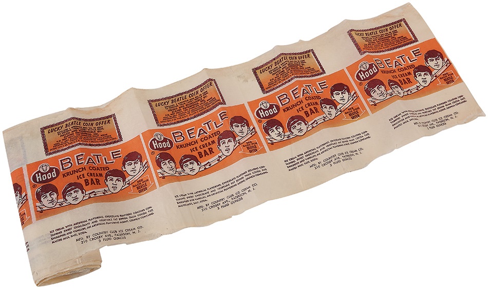 Lot # 1415: 1964 Beatles Hood Ice Cream Wrappers Uncut Roll of 24