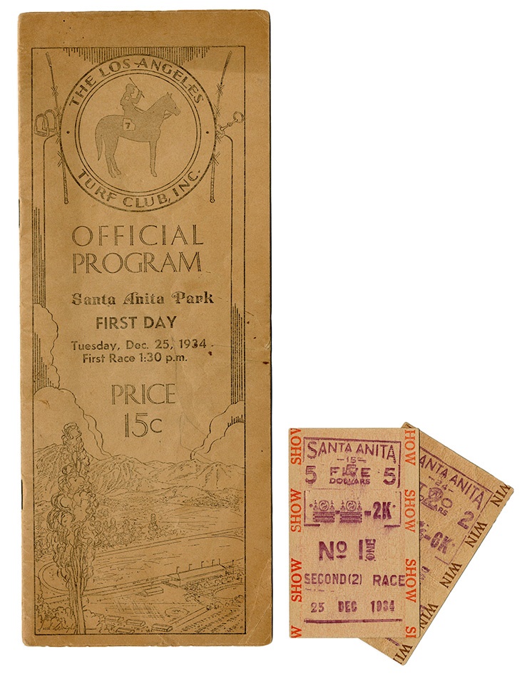 Lot # 98: 1934 Opening of Santa Anita Park Program & Betting Tickets