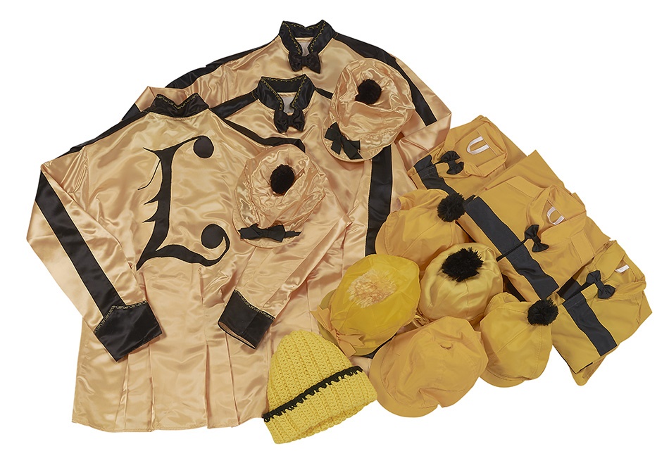 Six sets of silks highlight this tremendous lot that comes from a recent auction of property belonging to Seattle Slew co-owner, George Layman, Jr. The six complete sets reflect the colors of the 1977 Triple Crown winner: bumble bee yellow and black. The satin-like silks have a large capital "L" sewn in black on the back. The collection includes eight caps (one wool knit), two of which have "GEORGE LAYMAN, JR." hand-written inside the bill. The outfits exhibit light wear, though we have been unable to find any photos of jockeys riding Slew while wearing them. Blood Horse magazine ranks Seattle Slew as the ninth best United States Racehorse of the 20th Century.