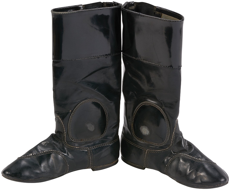 One of the top-earning jockeys in the sport today, Hall of Famer Mike Smith wore these black boots during his racing career and they show terrific use, as evidenced by the worn-out ankles. Both are signed by the man who rode Giacomo to the 2005 Kentucky Derby crown but the signatures are light (3/10). No one has won more Breeders' Cup races than Smith, who is a second-generation jockey.