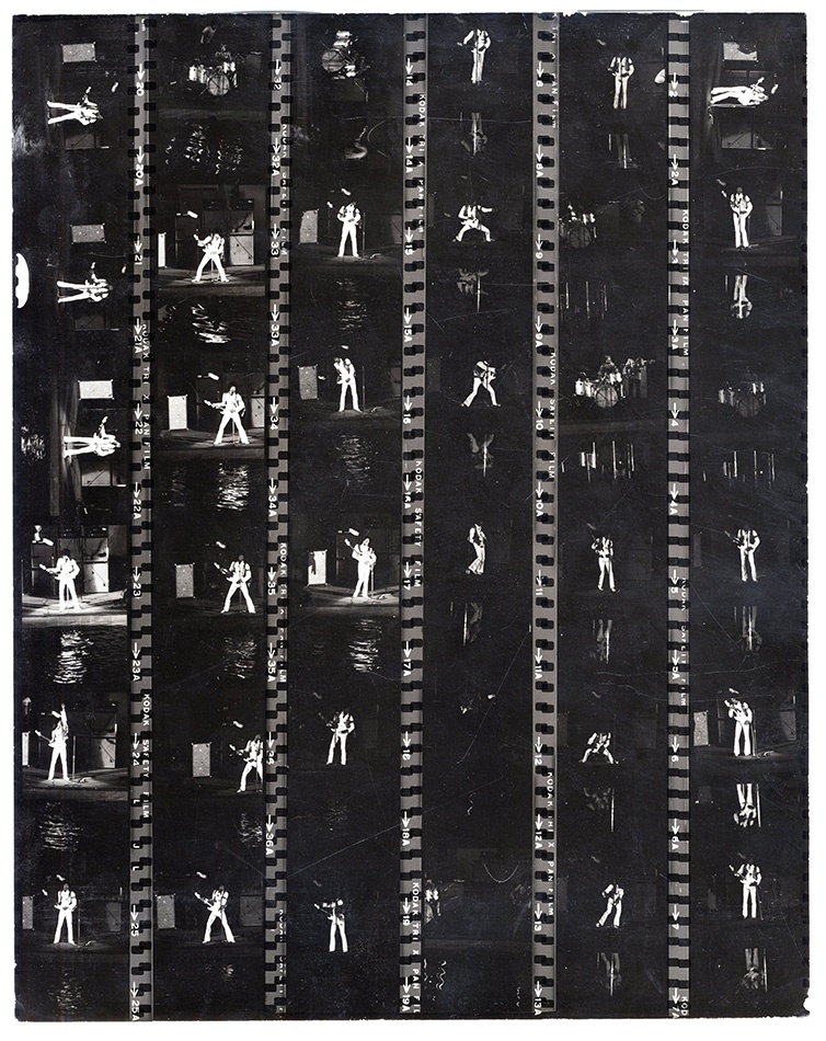 This contact sheet was used by a top photographer to evaluate which negatives to print. Exceptional quality double-weight was printed vintage to the period and measures 11" x 14", with Jimi depicted wearing his classic white suit.