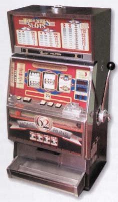 Marvelous one-armed bandit commemorating this feat of feats. A gleaming metal tower is a pure idol to the god of gambling. Front reads in brilliant color, "1998 62 Home Runs". Beside are scenes of McGwire hitting the big one in this, the "Major League Baseball Single Season Home Run Record Breaker". All metal and wood, this is amazing quality. This is a pro-fessional Las Vegas machine that was once used in the Flamingo Hilton Casino (as marked). Made by Bally, 41x21x12". Works per-fectly. EX-MT.