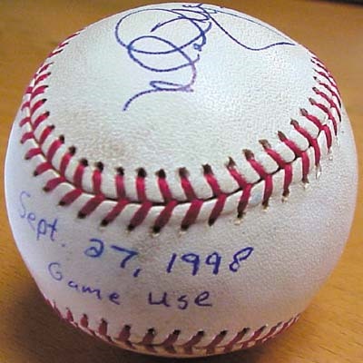 Historic sphere traveled the Busch Stadium diamond the night that Big Mac hit number seventy. Side panels are signed in NRMT ink by both McGwire and the Expos pitcher who gave up the final blast, Carl Pavano. Sweet spot is dated and notated, "Game Use."