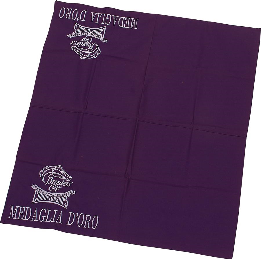 When the brilliant Medaglia d'Oro retired from racing in 2004 with over $5.7 million in earnings, his resume was as elite as it gets in the sport: He finished first or 2nd in 15 of his 17 career starts, winning the Travers, the Whitney and the Donn Handicap, and finishing 2nd in the Dubai World Cup, the Belmont and both the 2002 and 2003 Breeders' Cup Classics. Retired to an equally brilliant stud career where he's sired 11 Grade 1 winners including HOY Rachel Alexandra, this is the actual saddle cloth he wore while training at Santa Anita for his 2nd place finish in the 2003 Breeders' Cup Classic.