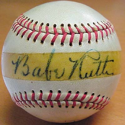 It's that bold and beautiful sweet spot signature that makes our hearts jump every time. Marvelous blue ink autograph between the stitches of this Official Pacific Coast League baseball would be a 10/10 if not for the yellowed strip of vintage tape that was placed there decades ago for protection. That old mistake could be your lucky break though-it's a chance to get a super-strong single signed Ruth at a fraction of the ordinary price.