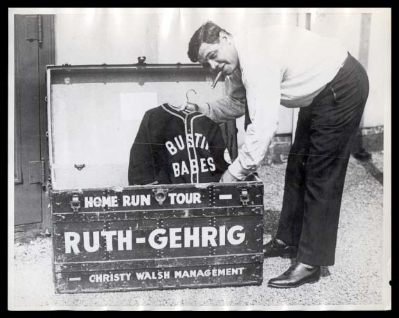 Boy, we sure do wish we could have attended one of the dates on this famous tour that followed the Babe's (and the Yanks') greatest season. We'll have to settle for this terrific photo though. Great EX-MT condition. 8x10".
