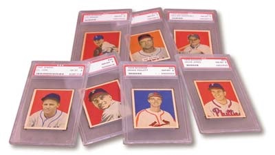 PSA 8's Here is a great way to upgrade your 1949 Bowman set with seven, PSA 8's (no qualifiers) in one lot! The lot includes: #30 Andy Seminick, #41 Lou Brissie, #48 Willard Marshall, #90 Gil Coan, #92 Willie Jones, #95 Howie Pollett, and #125 Ken Keltner. Four of the PSA 8's in this lot; #30, 48, 90, & 125 are the highest graded examples of those cards (no PSA 9's or 10's exist).