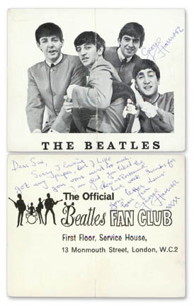 Lot # 235: George Harrison Note To A Fan On A Beatles Promo Card