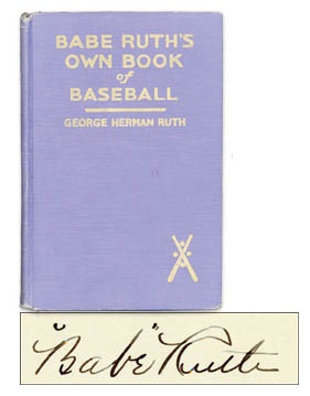 Title page features the coveted signature with the quotation marks around the "Babe." It's a dead Mint 10/10, and penned above the notation that "This is Number 485 of 1000 copies of "Babe Ruth's Own Book of Baseball" autographed by the Author." Dust jacket is missing, and there is some wear at the top and bottom of the spine and the edges of the hardcover, but the binding is solid and the pages inside are perfect. A solid investment.