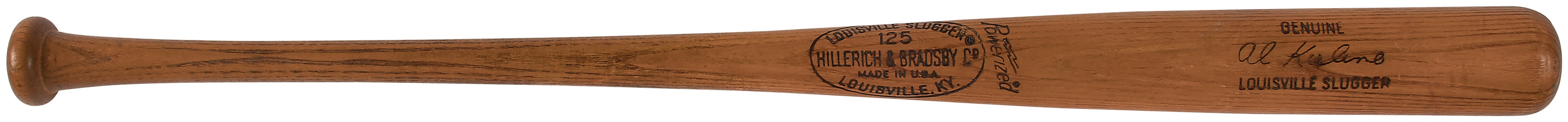 He played all 22 of his big league seasons with the Detroit Tigers, and Al Kaline used this impressive Hillerich & Bradsby bat during the tail-end of his Hall of Fame career, in either 1973 or 1974, or both. "6" and "M110L" are handwritten on the knob, while his signature is engraved on the barrel. The bat measures 34.5" and weighs 30.9 oz.