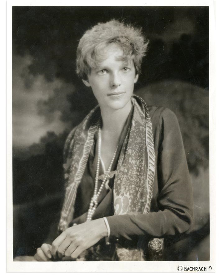 This is a rare 1930 studio portrait photo of Amelia Earhart; most of the photos of her were press photos not studio portraits. What's extraordinary is that this one was executed by a celebrated photographer, Ernest Bachrach, who was most known for his Hollywood glamour portraits. This photo is signed on the front and back. The famed aviatrix looks exceedingly handsome, more like a beautiful androgynous boy than a woman looked during that period. Caption mentions her recent engagement to publisher Putnam. There is something very special that emanates from this 8x10.5" image, which stands in EX+ condition.
