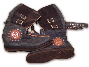 Black leather Ripari boots made in Italy with silver zipper, star studs at ankles and buckles. Signature is on right boot.