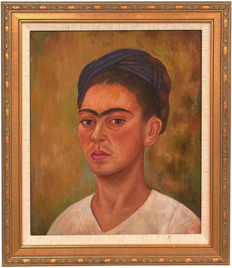 She made the "unibrow" fashionable. Frida Kahlo strikes a pensive pose in this exceptional oil on canvas portrait, which was painted by an unknown artist and obtained in Mexico many years ago. Kahlo was famous for her surrealist self-portraits, and this one captures a similar essence.