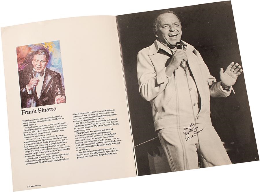 This Frank Sinatra 1978 World Tour Program bears a personalized first page with a 9.5/10 signature, scrolled by Old Blue Eyes. It was signed backstage at NYC's Radio City Music Hall on Oct. 20, 1978. The 29-page program is complete and excellent.