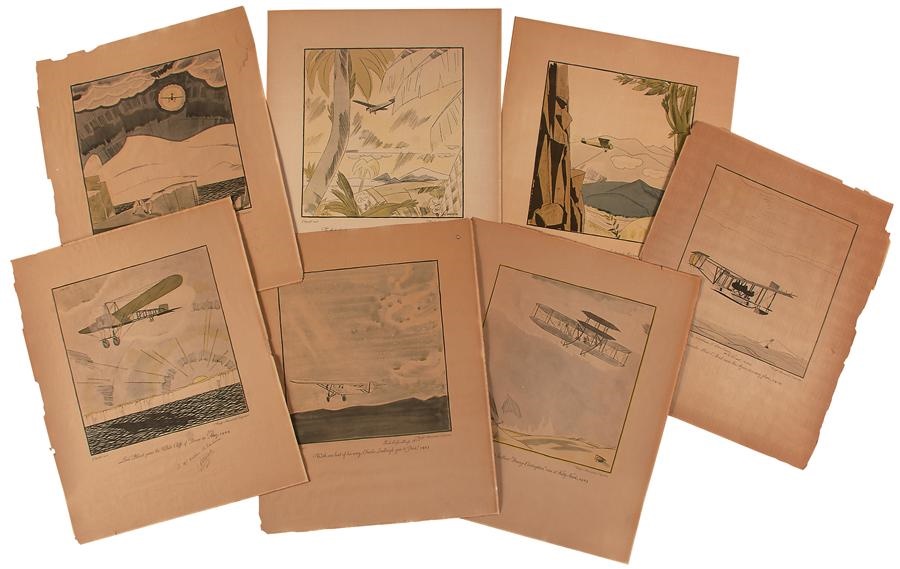 Lot # 1413: 1928 Unforgettable Exploits of the Air Signed Hand-Colored Lithographs (7)