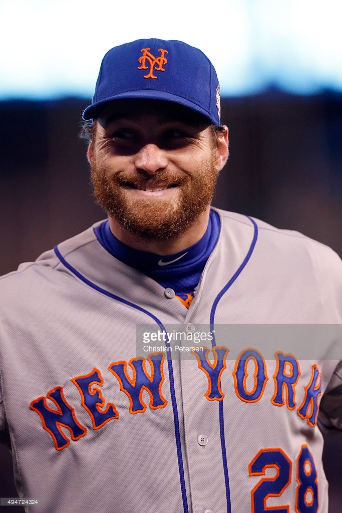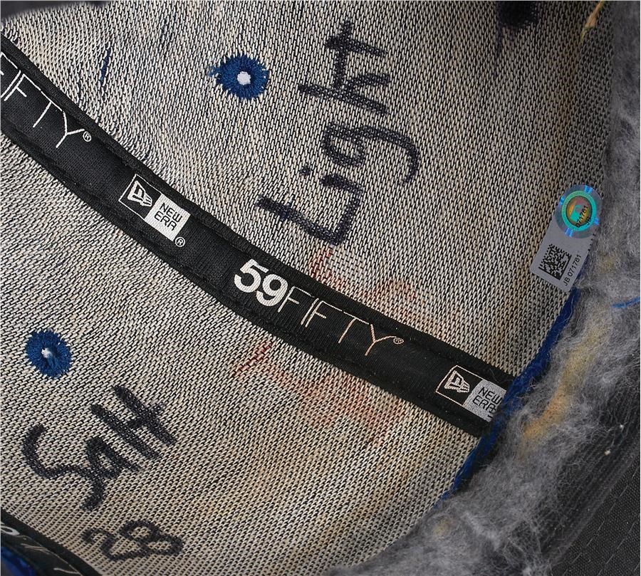 Though the memories remain fresh, Daniel Murphy's 2015 postseason home run barrage will certainly live on for generations. This incredible hat was game worn hat by Murph during that postseason run. This size 7 New Era on-field cap was worn in the following games: World Series - Games 2, 3, 4; NLCS - Game 4; NLDS - Games 4, 5. From one of the most historic streaks in MLB history, it shows incredible use with dirt and sweat stains, and "Salt Light 28" is written inside the cap in marker by Murphy. There are two (2) MLB holograms affixed to the cap with the World Series logo patch on side. Murphy stroked seven homers over a nine-game span - including six consecutive games - to lead the Mets to the World Series.