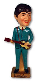 16". This vintage rare composition Bobbing head "nodder" was the store display model, thus accounting for its scarcity. It is in Excellent condition with very, very light age cracks on base (or body). Absolutely beautiful, with restored hand and guitar.