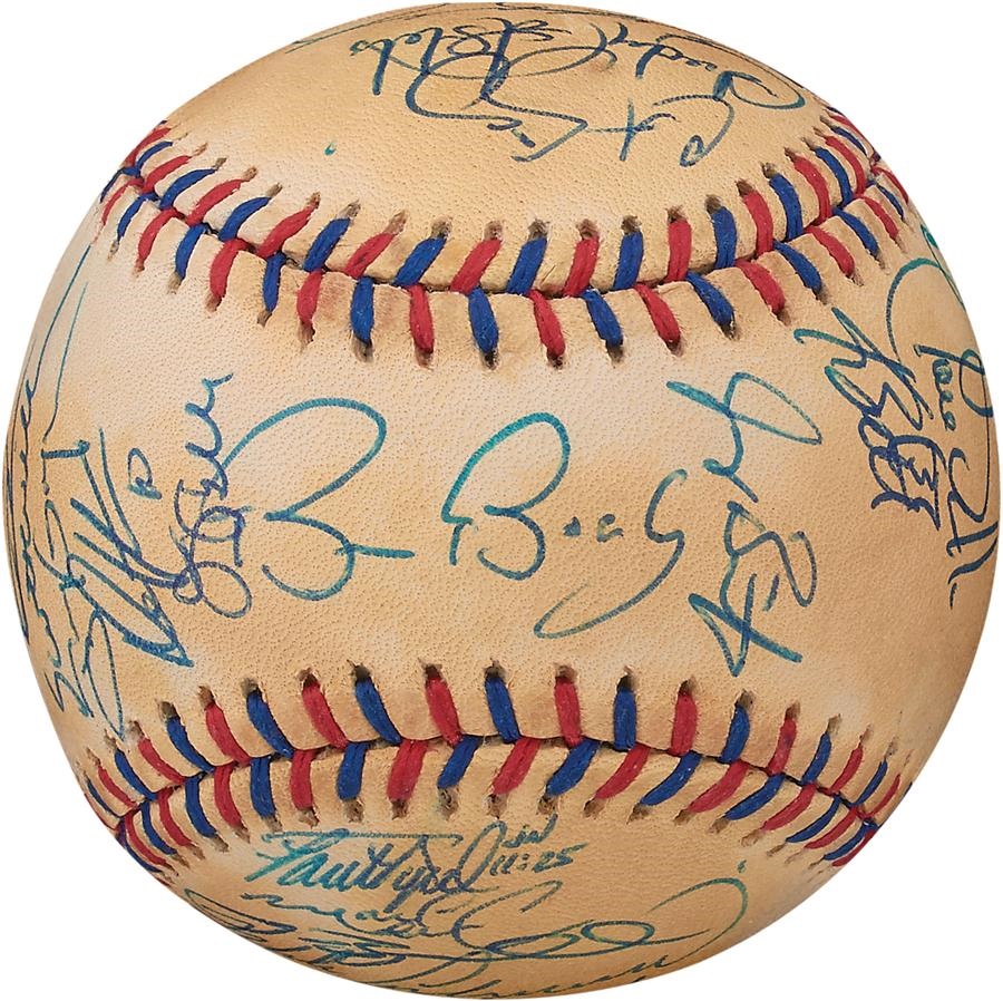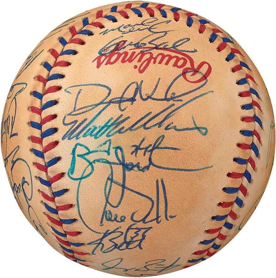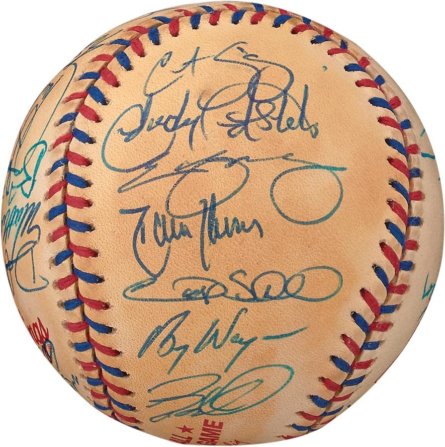 This 1999 Official All Star Game baseball is signed by 35 members of the National League team. Signatures include: