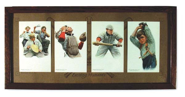The true master of the form (and a strong influence on the work of Norman Rockwell), Gross offers four charming views of the National Game at the time of Cobb, Wagner and Shoeless Joe. Each Mint postcard is arranged on a custom matte and framed to perfection. A wonderful display.