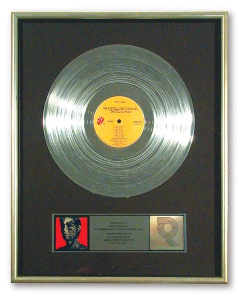 This colorful hologram strip plate style platinum RIAA official award was presented to a top executive. NRMT.