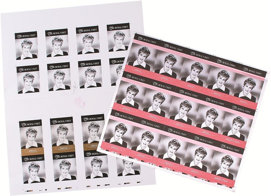 Of superb quality, these six different uncut sheets and proofs of press passes are for "The Royal Visit" of Princess Diana from the 1980s. Obtained directly from Otto Printing and Entertainment, who still produces passes and tickets for major events to this day, this regal group is in NRMT condition.
