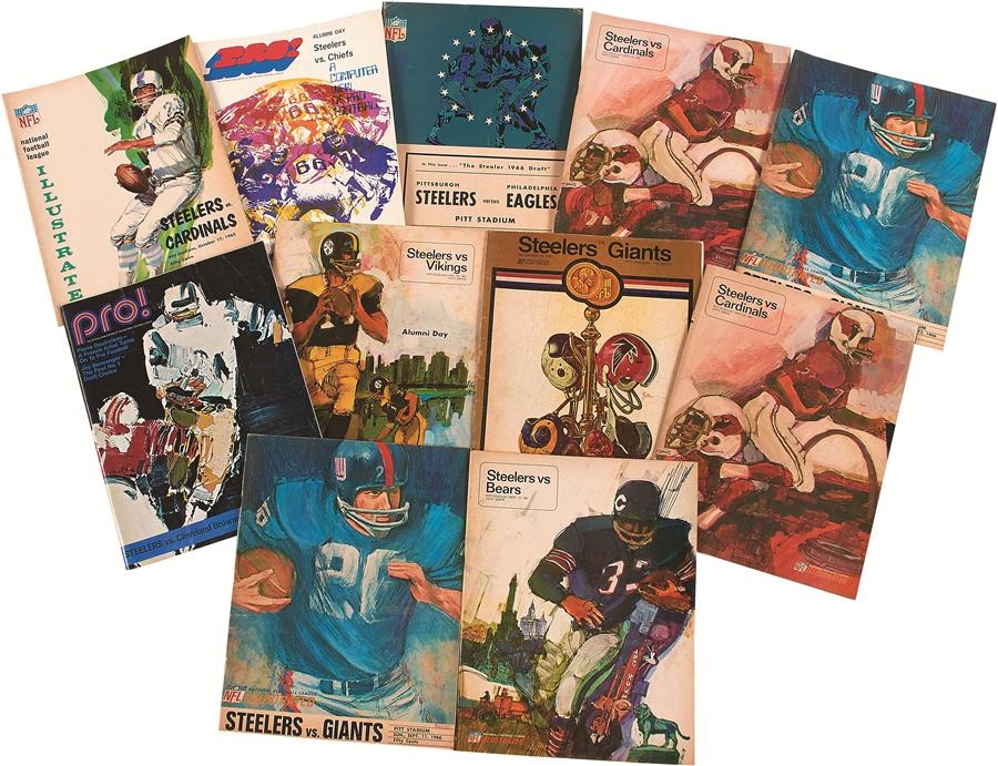A fun selection of programs are available in this lot, with a total of 56 game programs from two of the top teams in their respective fields. First is a wide range of 45 Notre Dame game programs, ranging from 1942-99. Most are from the 1950s-70s, some have game ticket stubs, and there is some duplication. Opponents include Pitt (very prevalent), Army, USC, and more. In addition, there are nine different Pittsburgh Steelers Game Day programs (two duplicates, 11 total) spanning 1965-71. A stellar look at two great teams through the years.