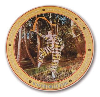 This famous poster for the Stones? 1976 concert at Knebworth Fair along with Todd Rundgren, Hot Tuna and Lynyrd Skynyrd features the dancing harlequin and is one of the only round concert posters. Extemely rare! NM.
