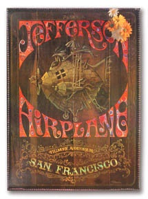 The Jefferson Airplane were one of the first of the wave of psychedelic rock bands from San Francisco. When the poster scene exploded they were well represented. This oversize (28 x 37") poster commemorates their concert appearnce at the Fillmore Auditorium in 1967. Art by J Michaelson. 10 NRMT posters.
