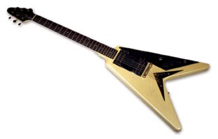 This metallic "Flying V" guitar is signed by Elton's favorite guitarist as well as by Elton John and Billy Joel on their first combined tour ever. Excellent condition.
