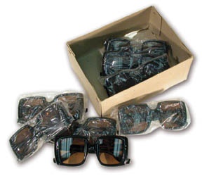 An original shipping box with eight original sixties Noviex sunglasses from Germany. They are printed "Beatles Style" on the "arms" and are featured on the Odeon Records EMI picture sleeve of which a color xerox is included. Excellent condition.